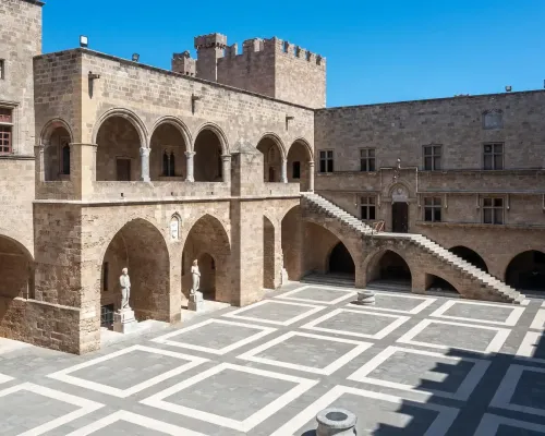 Just moments from your door lies the Palace of the Grand Master, an imposing fortress that once served as the residence of the Knights of St. John. Its grand halls and intricate mosaics offer a fascinating glimpse into the island’s medieval past. Nearby, the Street of the Knights remains one of the best-preserved medieval streets in Europe, lined with stone buildings that once housed the knightly orders.